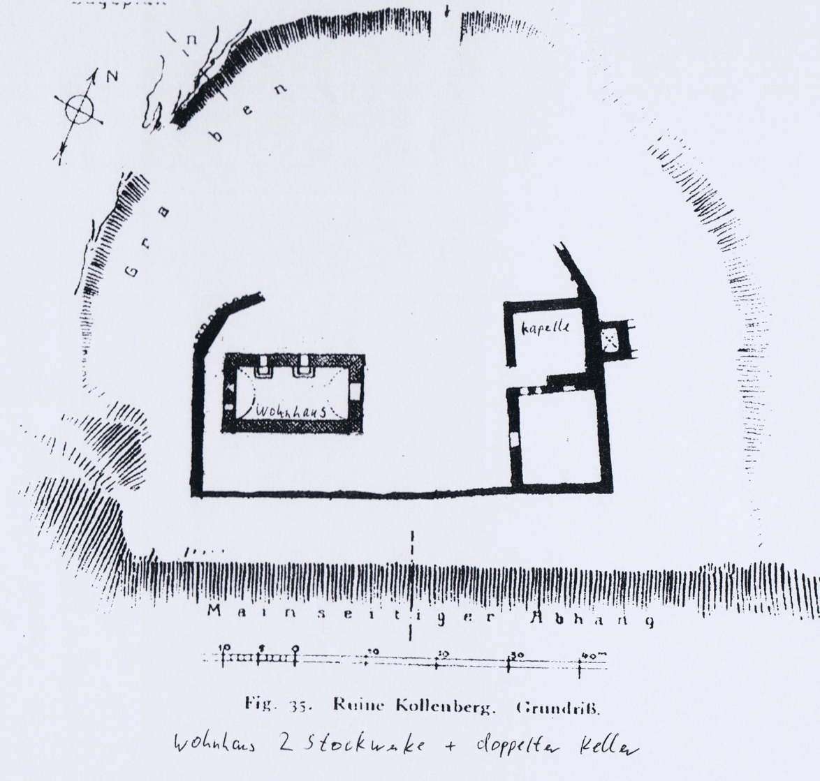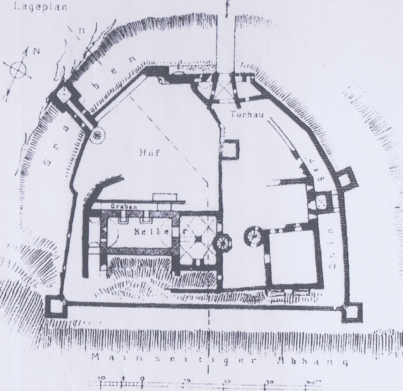 Deutlich größere Eckbuckelquader gibt es ferner an der Südostecke des südöstlichen Wohnbaus. Hier könnte es sich um eine ältere Ringmauer handeln, die eventuell noch ins 13. Jh. zurückreicht.