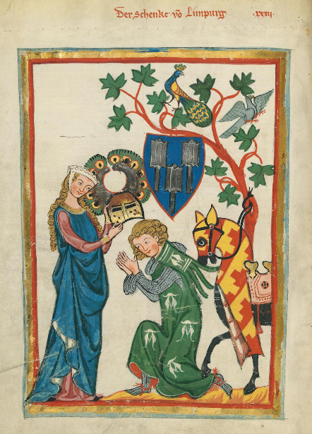 "Der Schenke vo Limburg" (Der Beiname Colbo verweisst auf die Streitkolben im Wappen), Große Heidelberger Liederhandschrift (Codex Manesse), Universitätsbibliothek Heidelberg